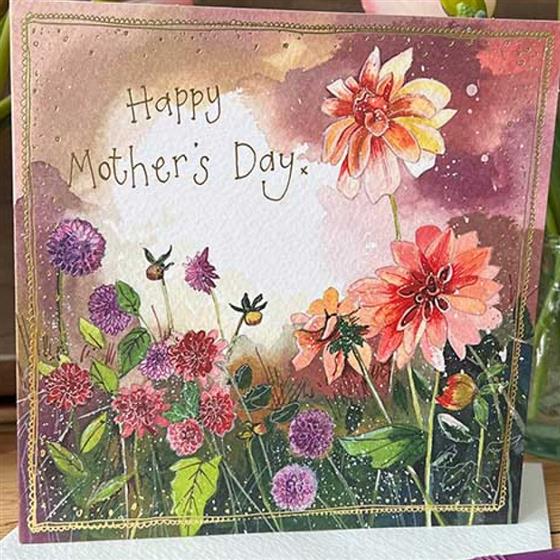 Say Happy Mother’s Day with timeless floral elegance using this beautiful Alex Clarke greeting card. The design features “Happy Mother’s Day” surrounded by stunning dahlias, creating a classic and uplifting look. Blank inside so you can add your own heartfelt message. A 160mm square card supplied with a white hammer envelope, and printed in the UK — perfect for mums who love flowers and traditional designs.