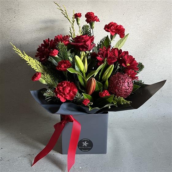 A smaller sized arrangement full of seasonal flowers and foliage's, to fill loved ones full of festive cheer.