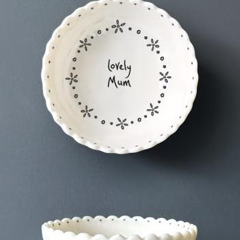 Celebrate mum with the elegant Small Scallop Bowl, beautifully engraved with the words ‘Lovely Mum’ in the centre. Crafted from fine porcelain with a delicate scalloped edge, this charming piece is perfect for holding jewellery, trinkets, or simply as a decorative keepsake. Ideal for Mother’s Day, birthdays, or just to show your love and appreciation, it’s a timeless gift that adds beauty and meaning to any home. Shop now for a piece that speaks from the heart!