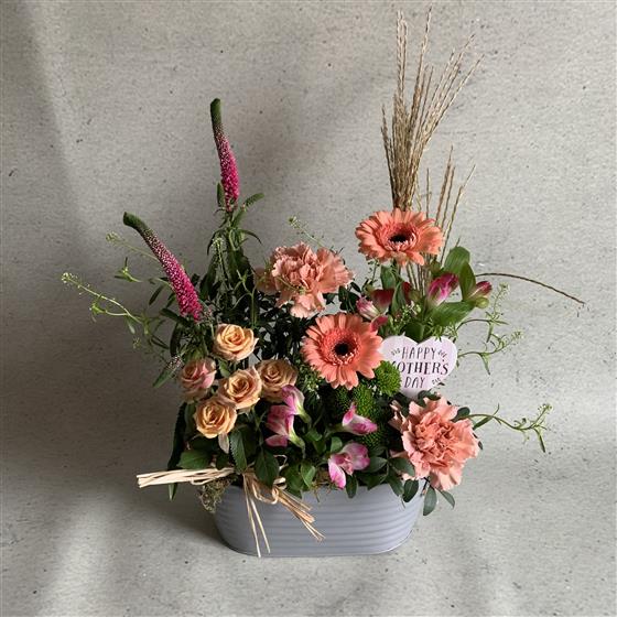 Expertly arranged in floral foam for easy care, this design only requires topping up with water and following the simple care instructions attached — making it both beautiful and practical.