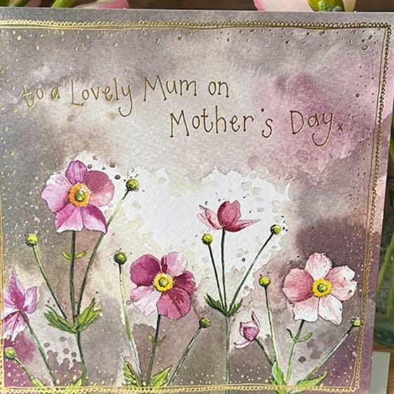 Say Happy Mother’s Day with graceful floral charm using this beautiful Alex Clarke greeting card. The design features “To a Lovely Mum on Mother’s Day” adorned with elegant Japanese anemones, creating a soft and timeless floral look. Blank inside so you can add your own heartfelt message. A 160mm square card supplied with a white hammer envelope, and printed in the UK — ideal for mums who love delicate flowers and classic designs.